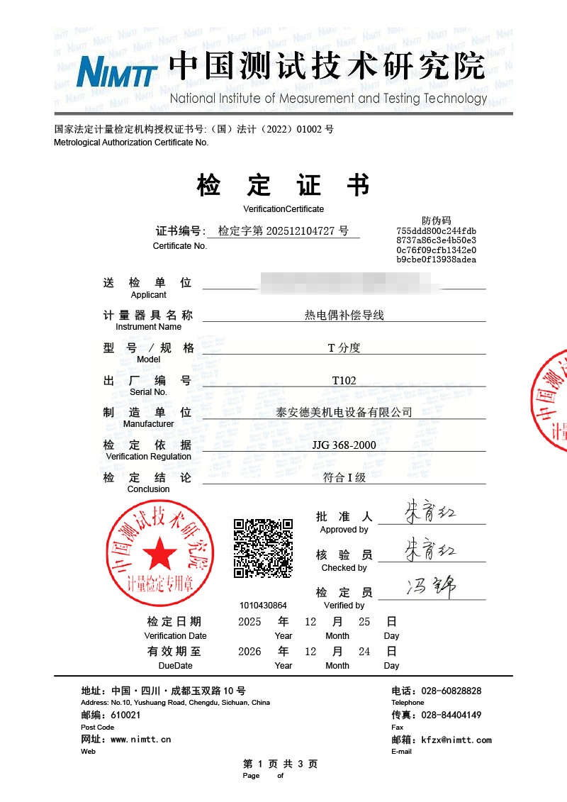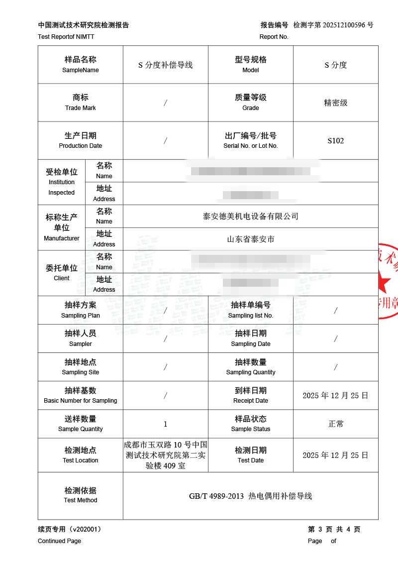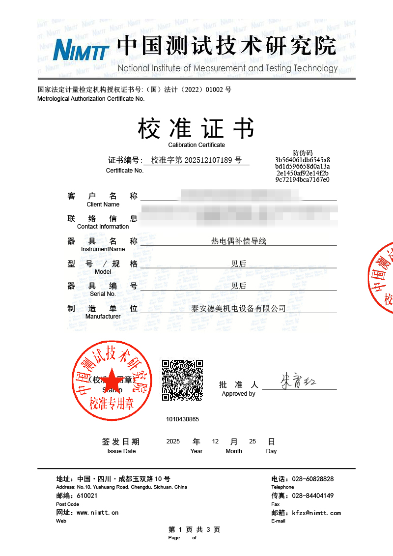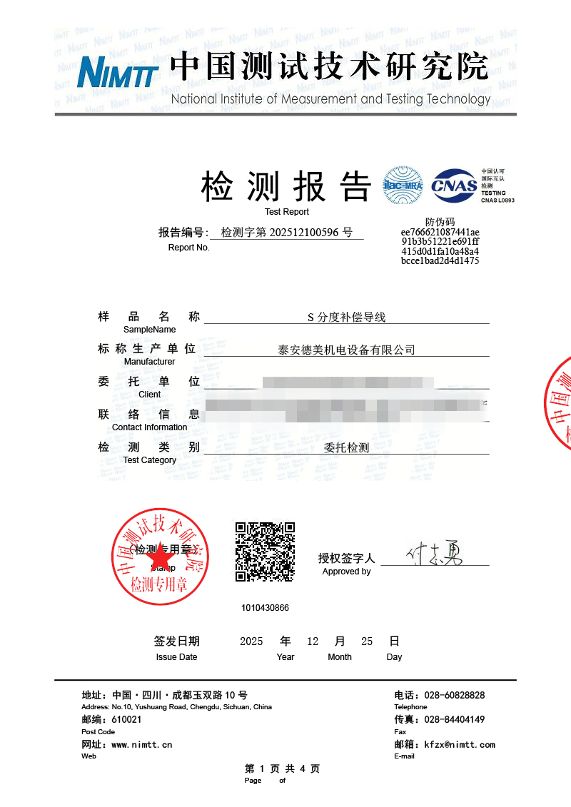 補償導線(xiàn)檢測、檢定、校準報告 2026-1-4 本文被閱讀 148 次