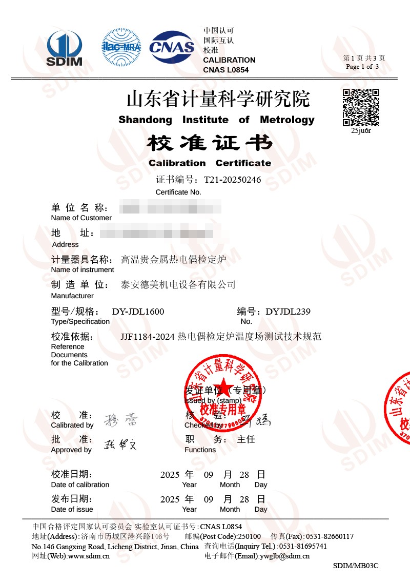 高溫貴金屬熱電偶檢定爐(800-1600℃)校準證書(shū) 2025-10-14 本文被閱讀 22 次