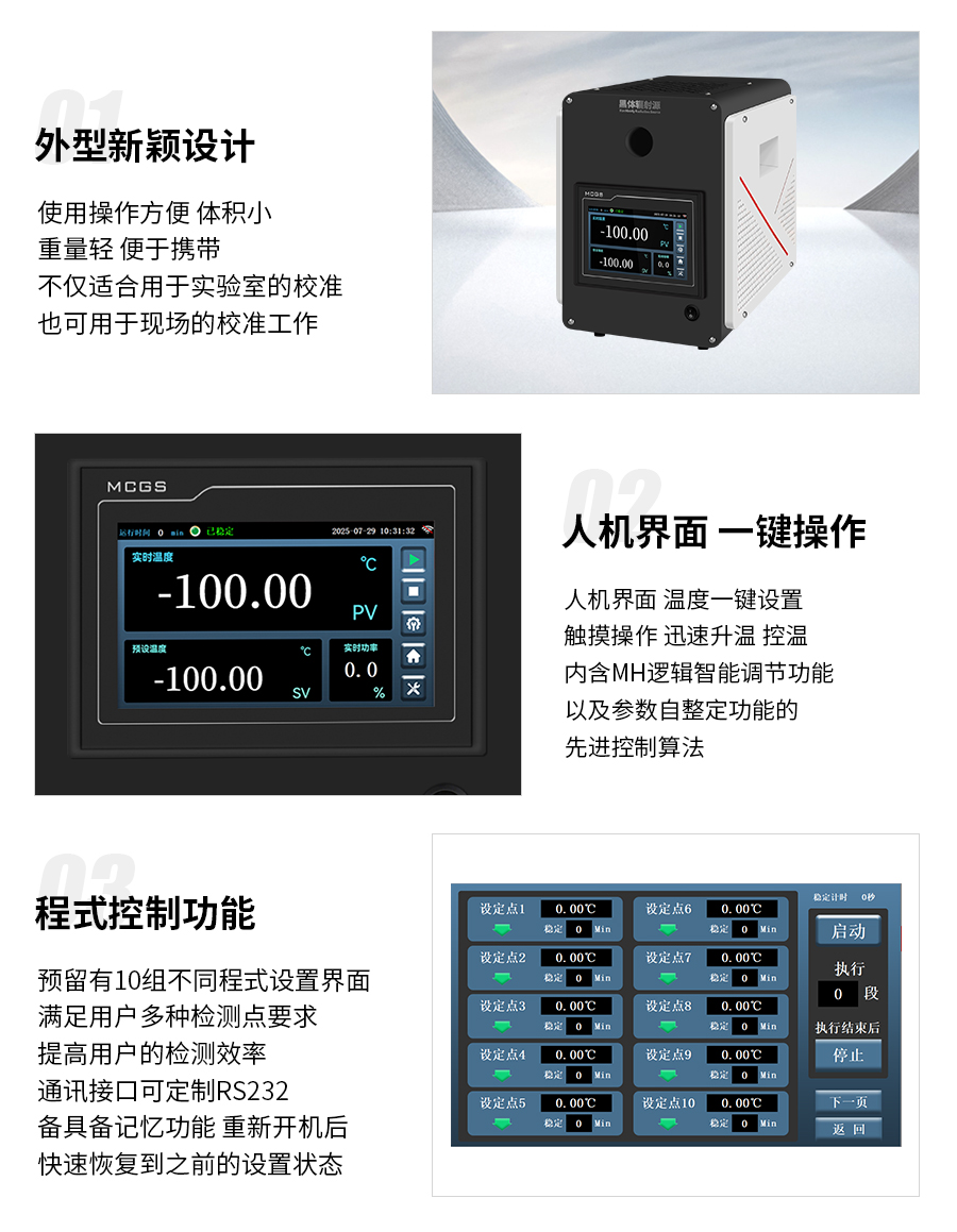 1)使用操作方便、體積小重量輕,便于攜帶,不僅適合用于實(shí)驗室的校準,也可用于現場(chǎng)的校準工作;