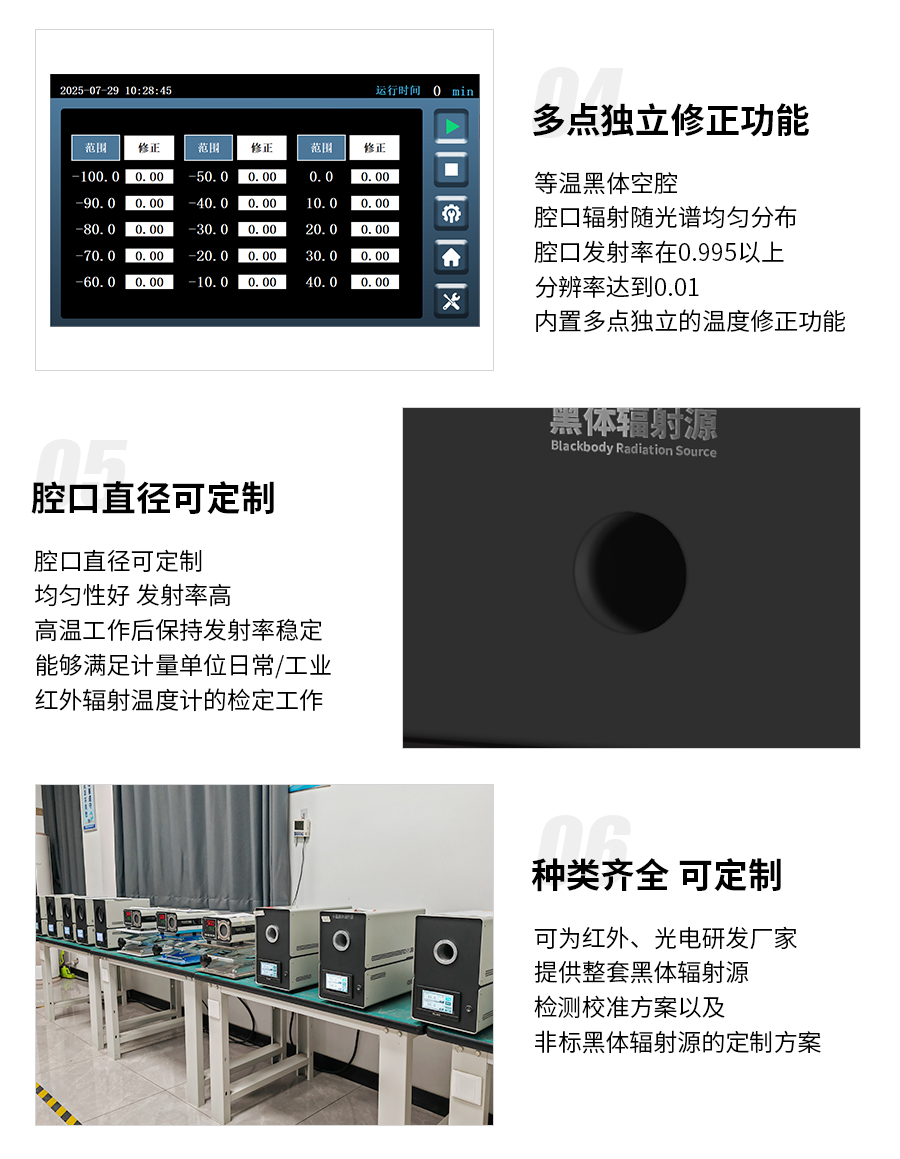 5)等溫黑體空腔,只一個(gè)腔口,腔口輻射隨光譜均勻分布,腔口發(fā)射率在0.995以上,分辨率達到0.01;