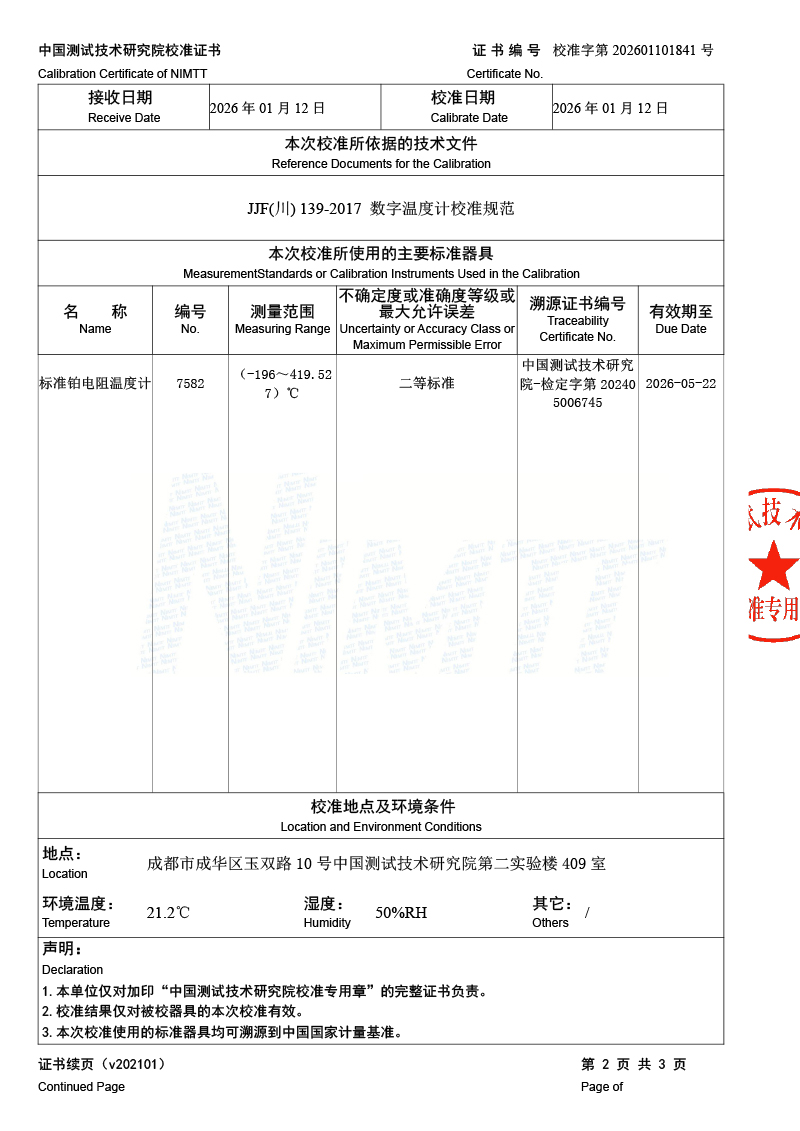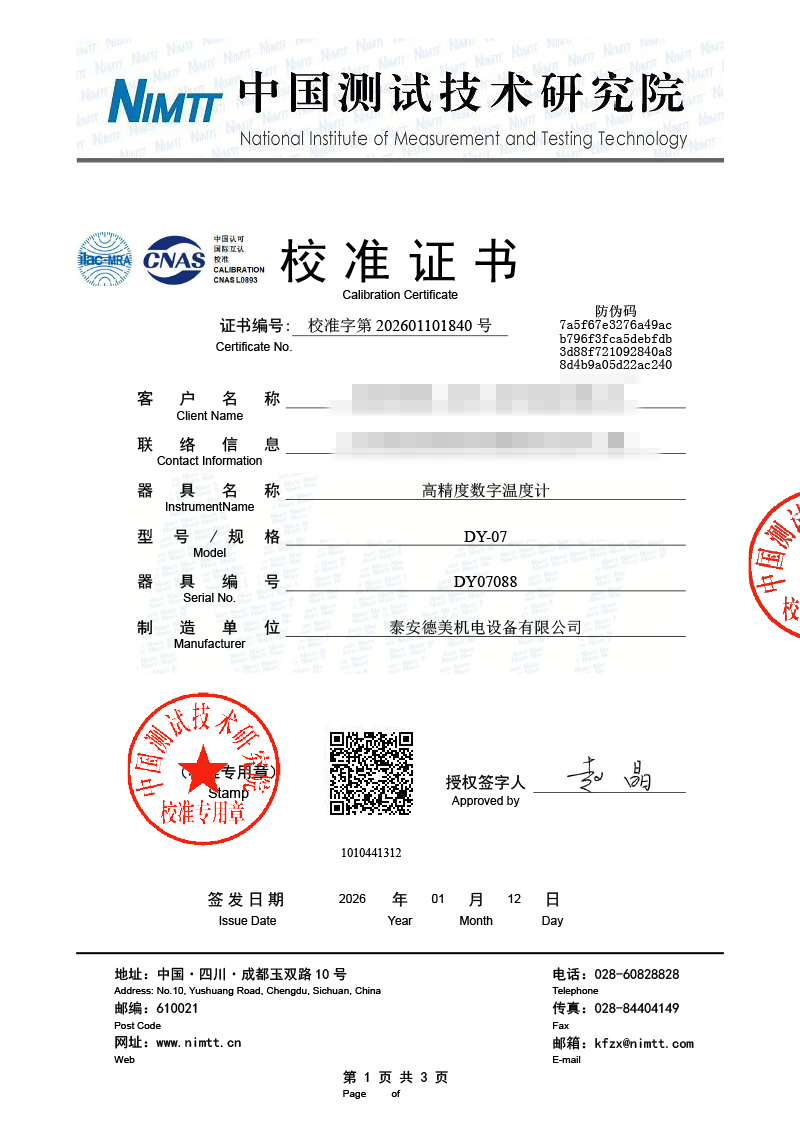 高精度數(shù)字溫度計-校準(zhǔn)證書 2026-1-26 本文被閱讀 7 次