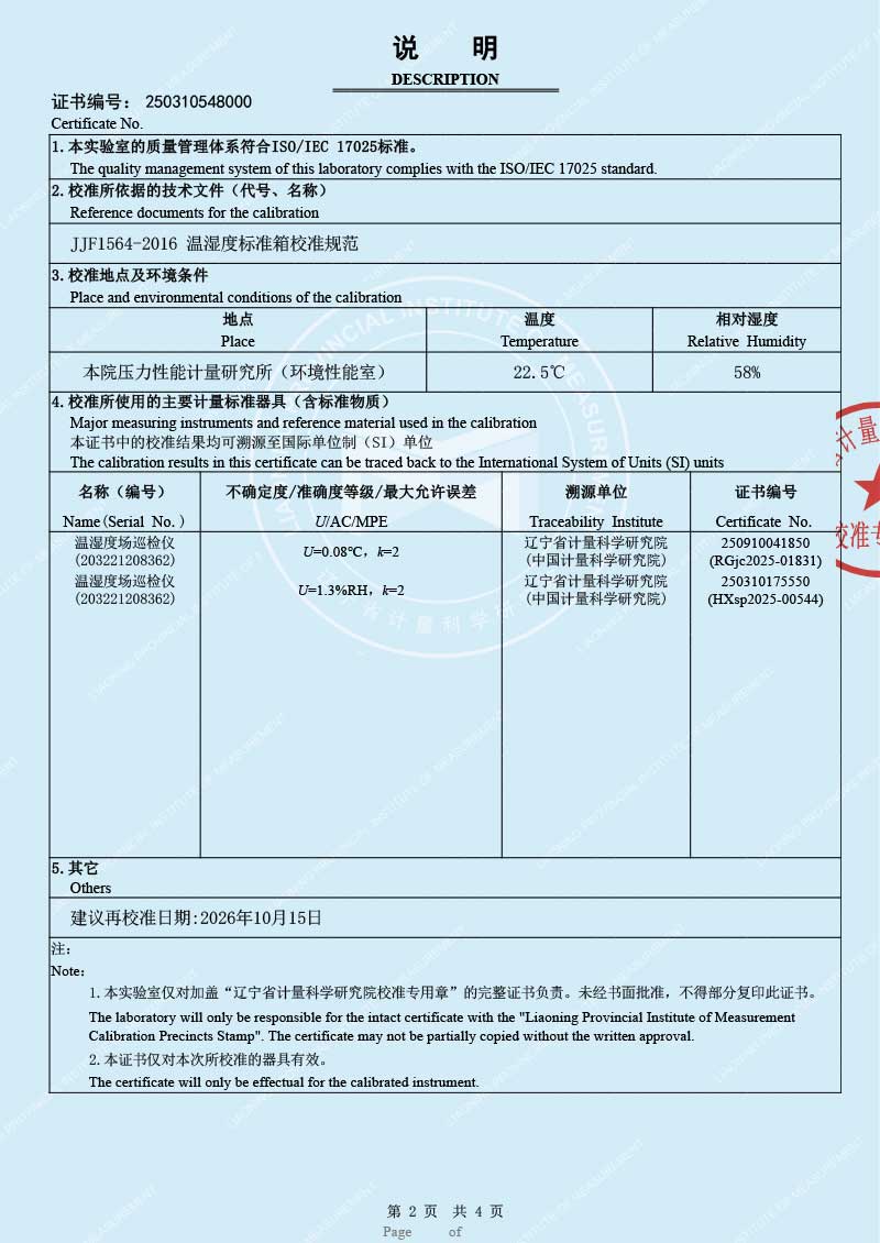 便攜式溫濕度檢定箱(-10-60℃)校準證書(shū) 2025-10-30 本文被閱讀 11 次
