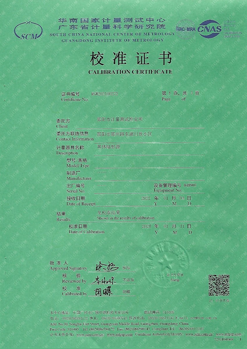 | 上一條:長(cháng)沙彼樂(lè )機電設備有限公司-體溫黑體爐耳溫部分 | 下一條:露點(diǎn)儀檢定證書(shū) |
