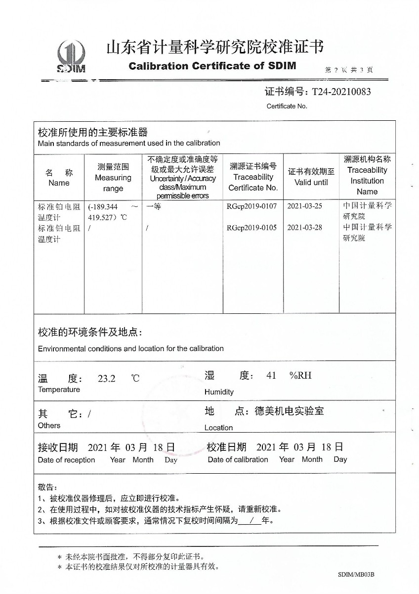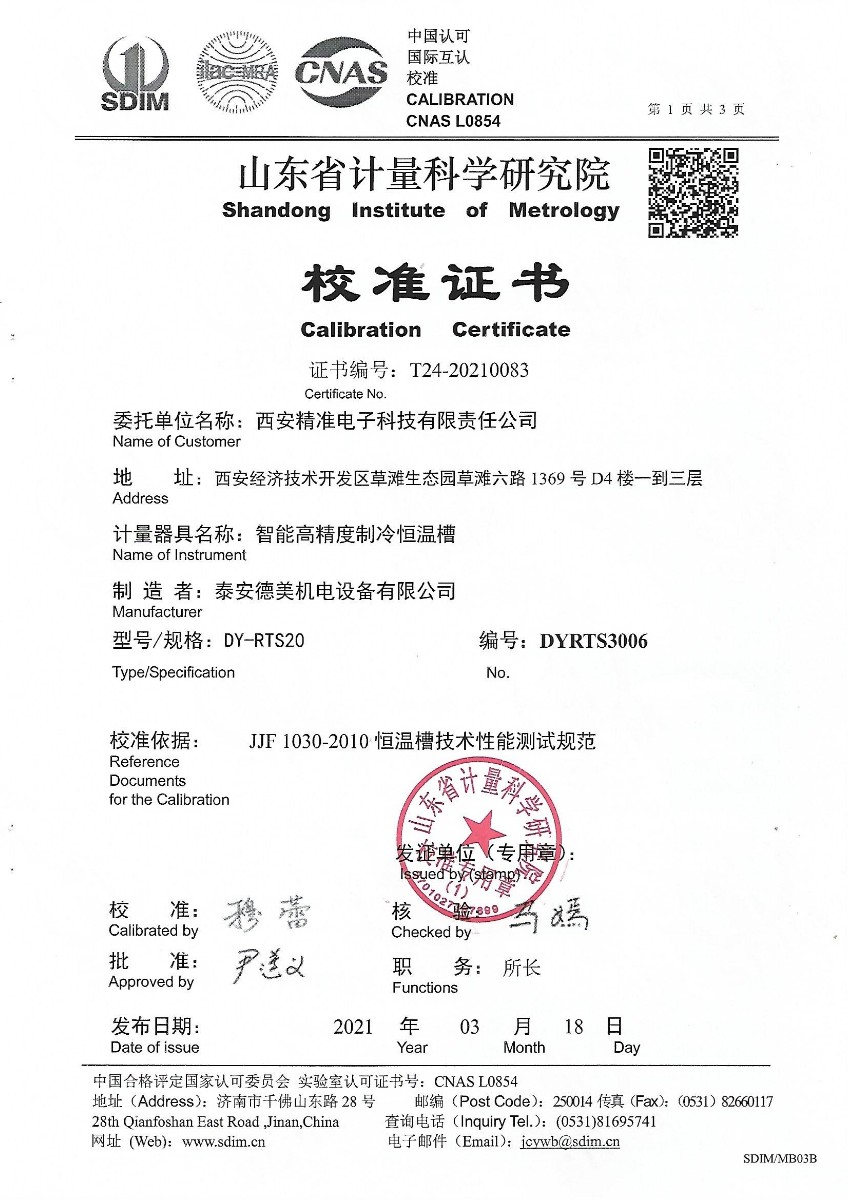 上一條:西安電子科技有限責任公司-智能高精度恒溫油槽下一條:便攜式溫濕度檢定箱(-10-60℃)校準證書(shū)