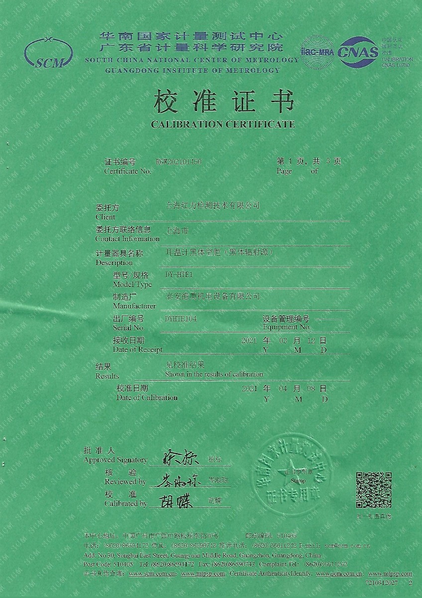 | 上一條:上海紅力檢測技術(shù)有限公司-額溫計黑體空腔 | 下一條:便攜式溫濕度檢定箱(-10-60℃)校準證書(shū) |