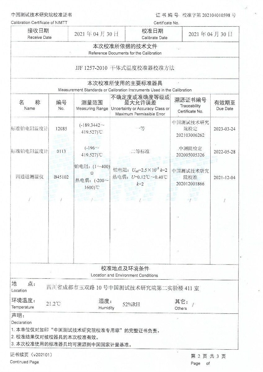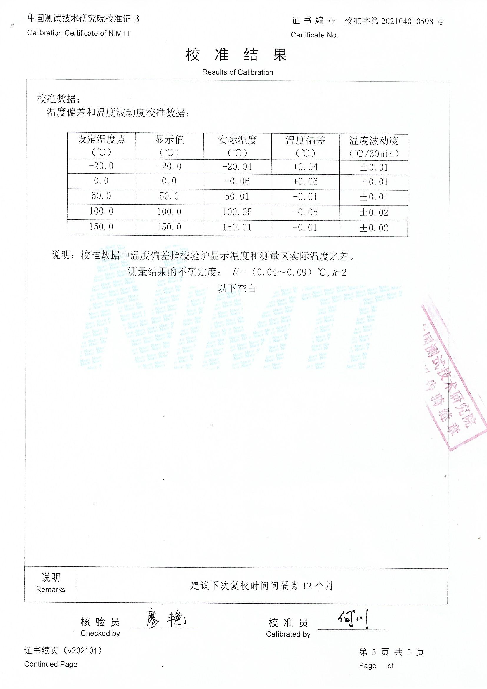 | 上一條:中集安瑞環(huán)科技股份有限公司-制冷恒溫槽 | 下一條:便攜式溫濕度檢定箱(-10-60℃)校準證書(shū) |