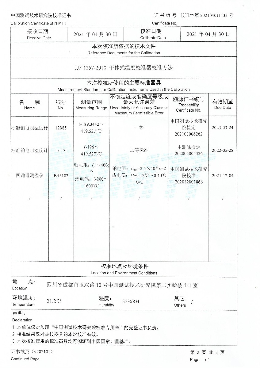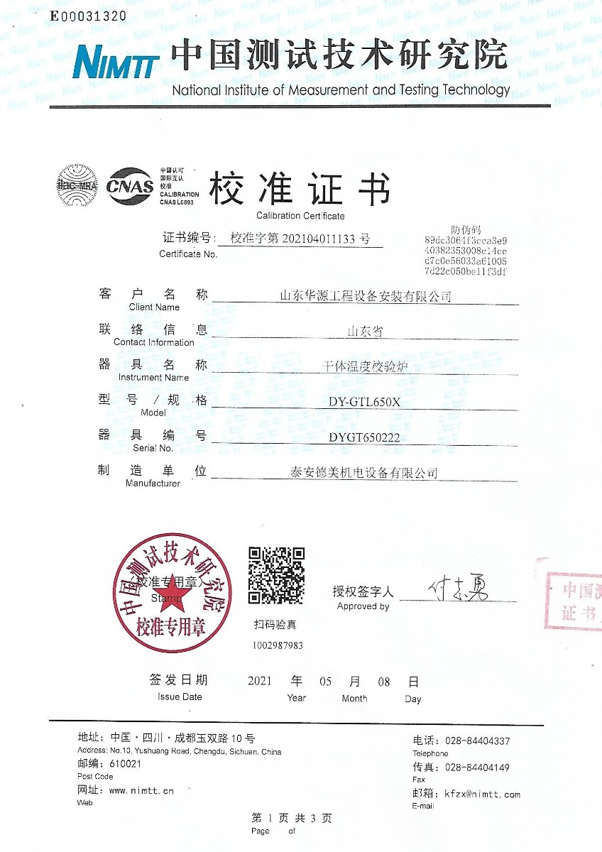 上一條:馬鞍山科思化學(xué)有限公司-干體溫度校驗爐下一條:便攜式溫濕度檢定箱(-10-60℃)校準證書(shū)