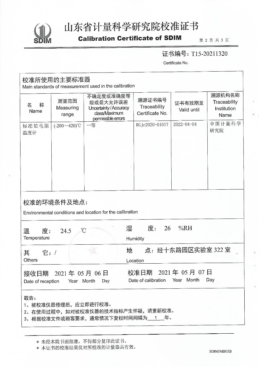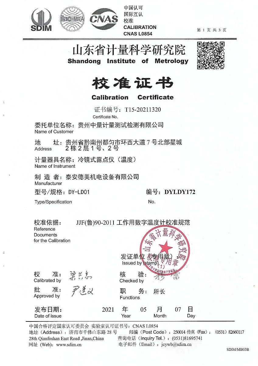| 上一條:貴州中量計量測試檢測有限公司-冷鏡式露點(diǎn)儀檢定證書(shū) | 下一條:便攜式溫濕度檢定箱(-10-60℃)校準證書(shū) |