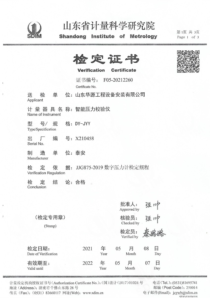 山東華源工程設備安裝有限公司-智能壓力校驗儀X210458 2021-5-27 本文被閱讀 13649 次