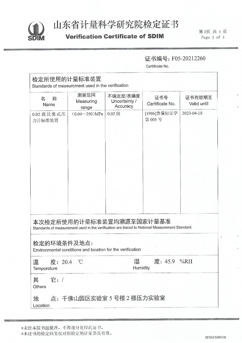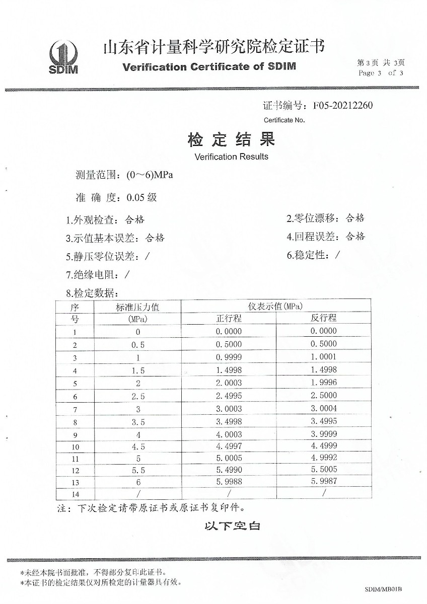 上一條:山東華源工程設備安裝有限公司-智能壓力校驗儀X210457下一條:便攜式干體爐(-30-150℃)校準證書(shū)