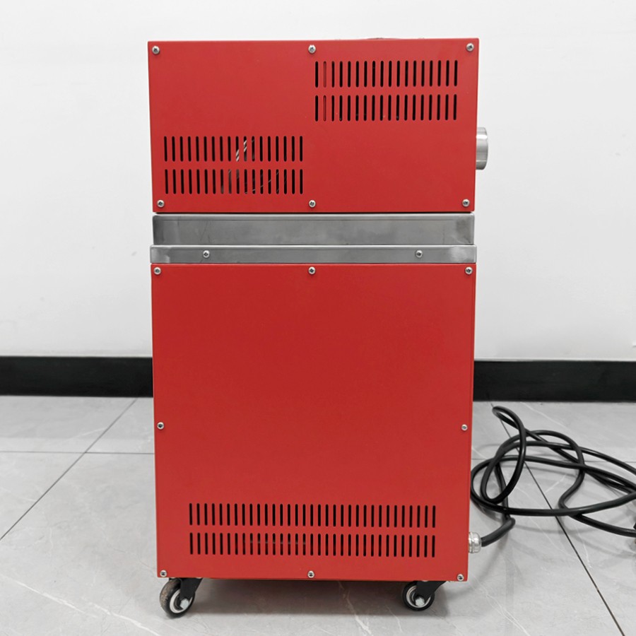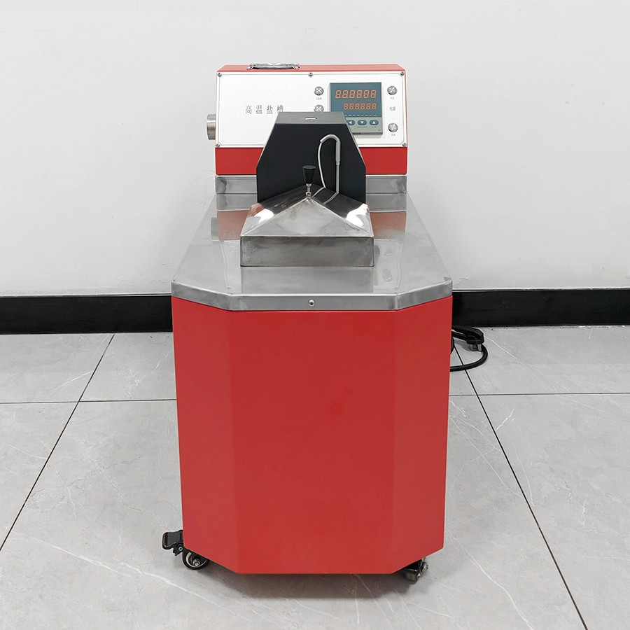 產(chǎn)品采用先進(jìn)的自動(dòng)控制系統,界面友好,操作方便,控制精度高。主要是由加熱系統、控溫系統、攪拌系統所組成。槽體分混合區與工作區。在混合區內由加熱器產(chǎn)生的熱量使槽內固態(tài)鹽(介質(zhì))升溫熔化成鹽液,當鹽液溫度上升到接近設定溫度時(shí),控溫系統根據感溫器測得的溫度來(lái)控制加熱器工作,再經(jīng)過(guò)攪拌系統的強烈攪拌充分均勻后的鹽液(介質(zhì))送入少受外界干擾的工作區。從而得到一個(gè)溫度穩定溫場(chǎng)均勻的液體空間。