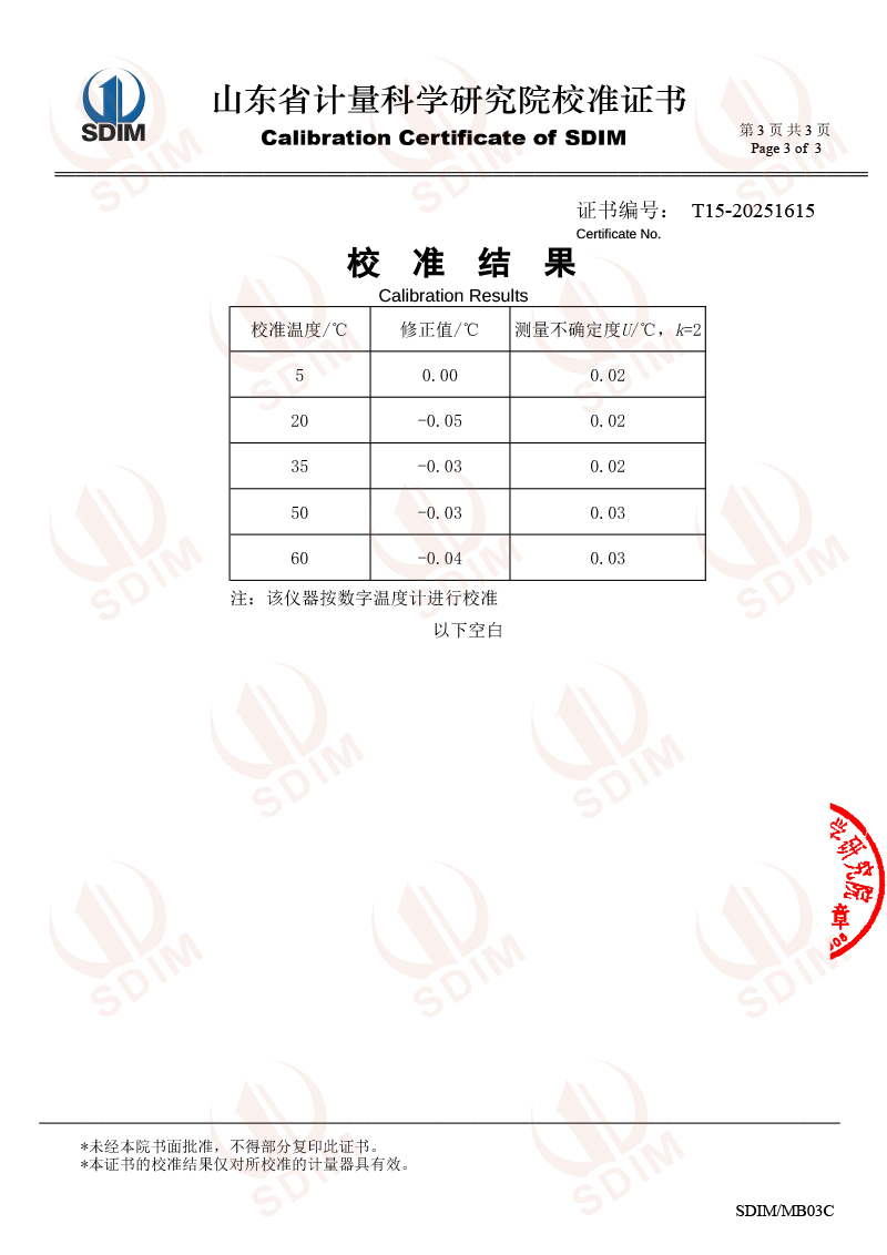 高精度數字溫度計(-20-100℃)校準證書(shū)