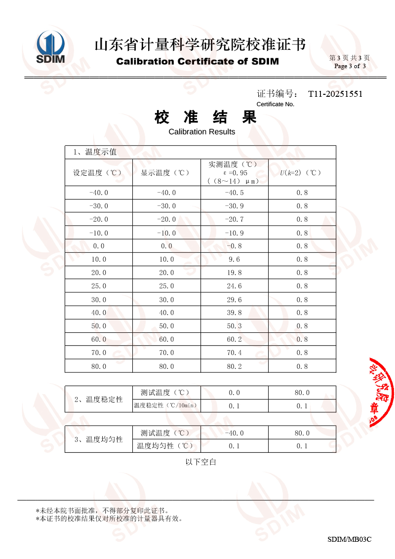超低溫面源黑體爐(-40-80℃)校準證書(shū)
