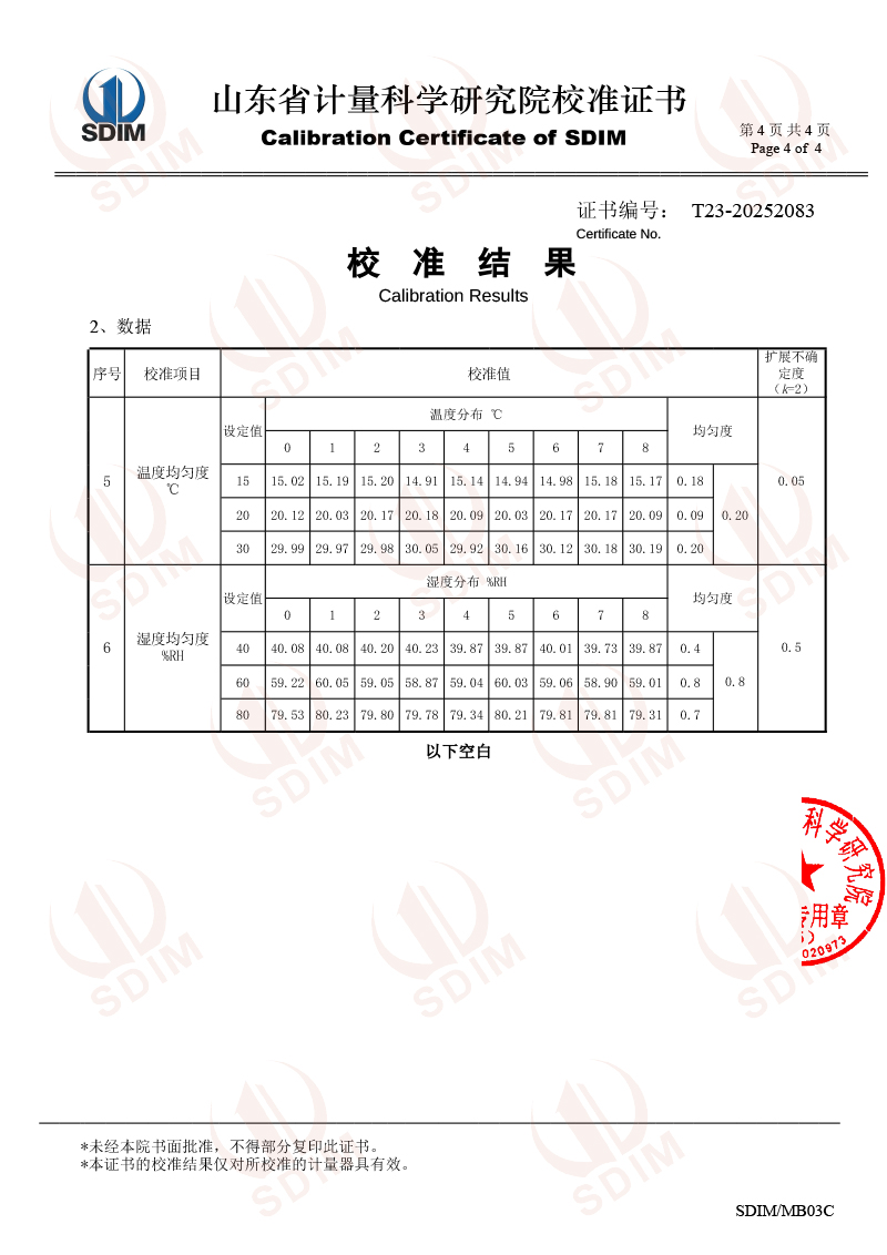 溫濕度檢定箱校準證書(shū)