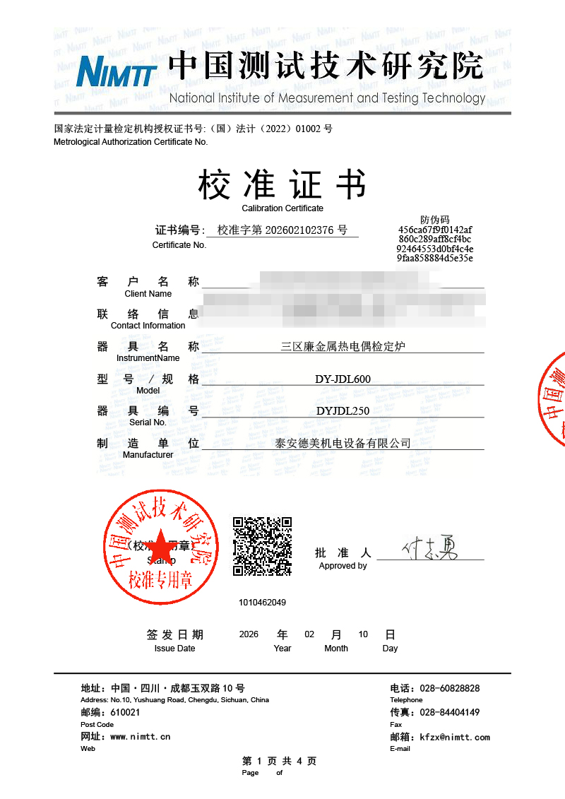 三區(qū)廉金屬熱電偶檢定爐-校準(zhǔn)證書 2026-2-11 本文被閱讀 45 次