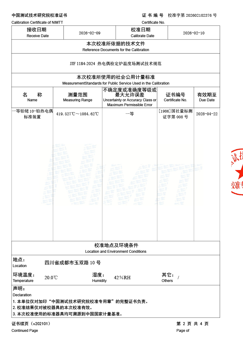 三區(qū)廉金屬熱電偶檢定爐-校準(zhǔn)證書