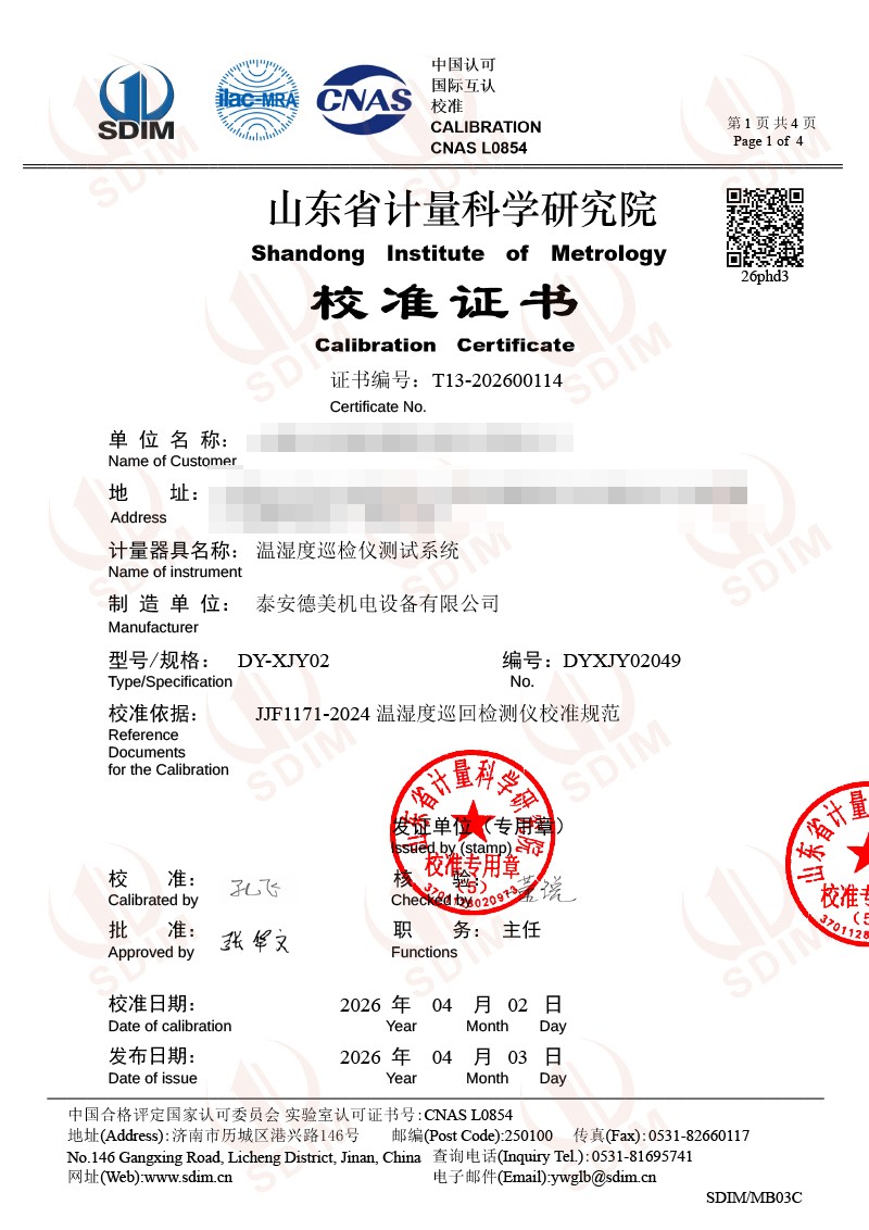 溫濕度巡檢儀測試系統(tǒng)-校準(zhǔn)證書 2026-4-7 本文被閱讀 47 次