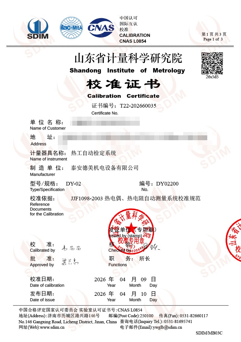 熱工自動(dòng)檢定系統(tǒng)-校準(zhǔn)證書 2026-4-11 本文被閱讀 41 次