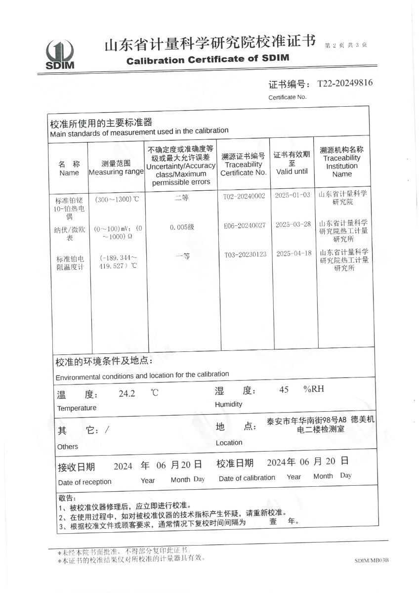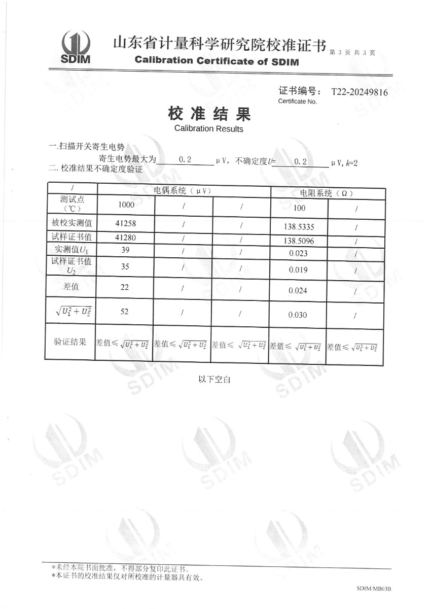 | 上一條:廉金屬熱電偶檢定爐(300~1200℃)校準證書(shū) | 下一條:便攜式干體爐(-30-150℃)校準證書(shū) |