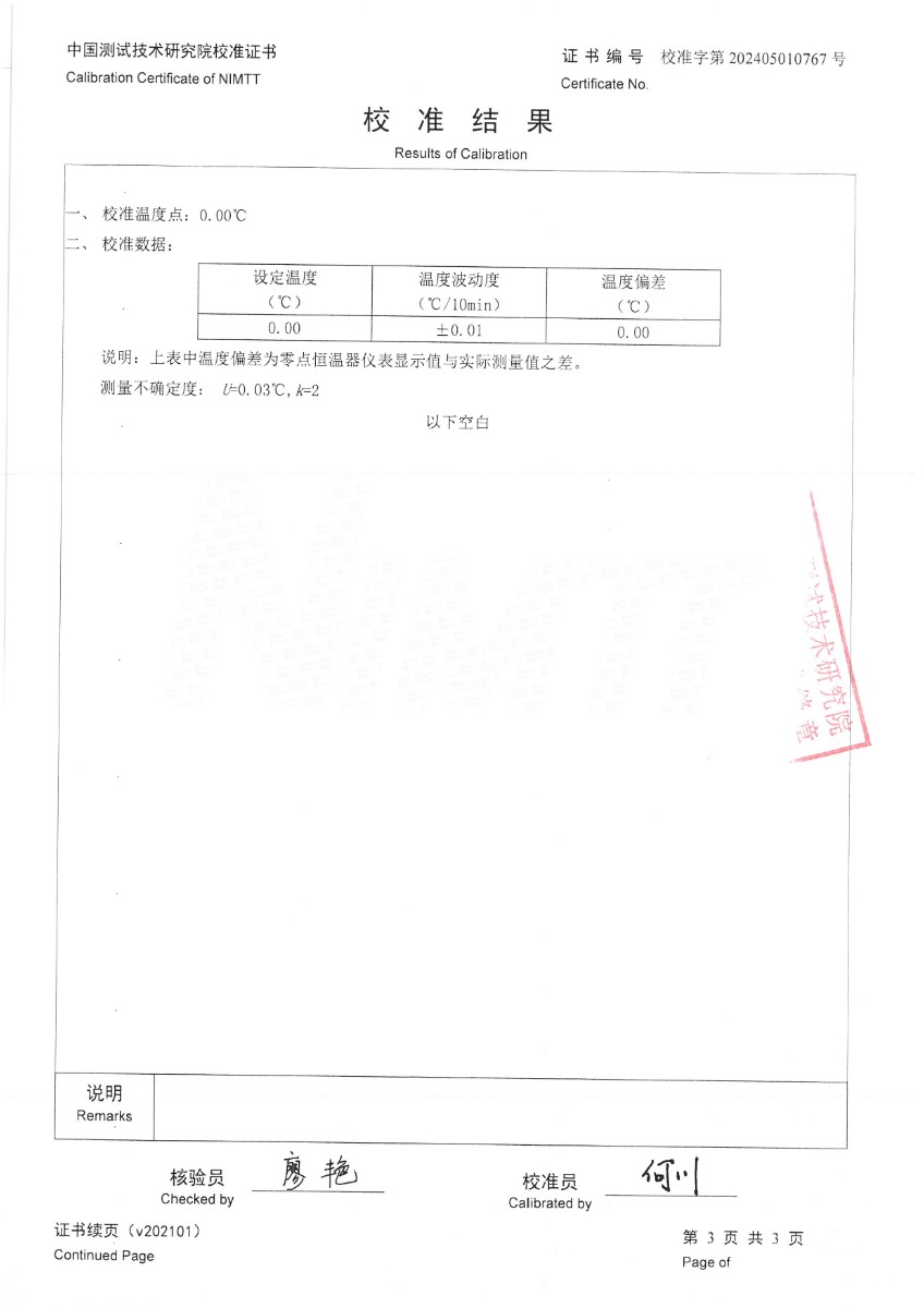 零點(diǎn)恒溫器校準證書(shū)