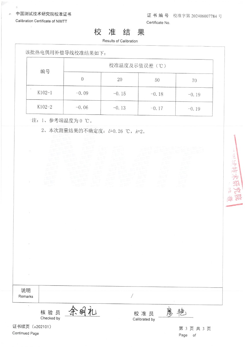 補償導線(xiàn)K分度校準證書(shū) 2024-6-29 本文被閱讀 6033 次