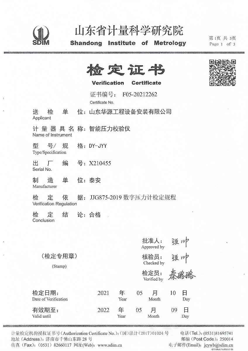山東華源工程設備安裝有限公司-智能壓力校驗儀X210455 2021-5-27 本文被閱讀 12534 次