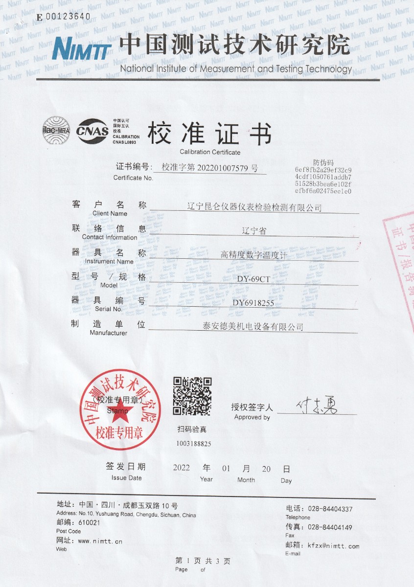 遼寧昆侖儀器儀表檢驗檢測有限公司-高精度數字溫度計 2022-2-15 本文被閱讀 13225 次