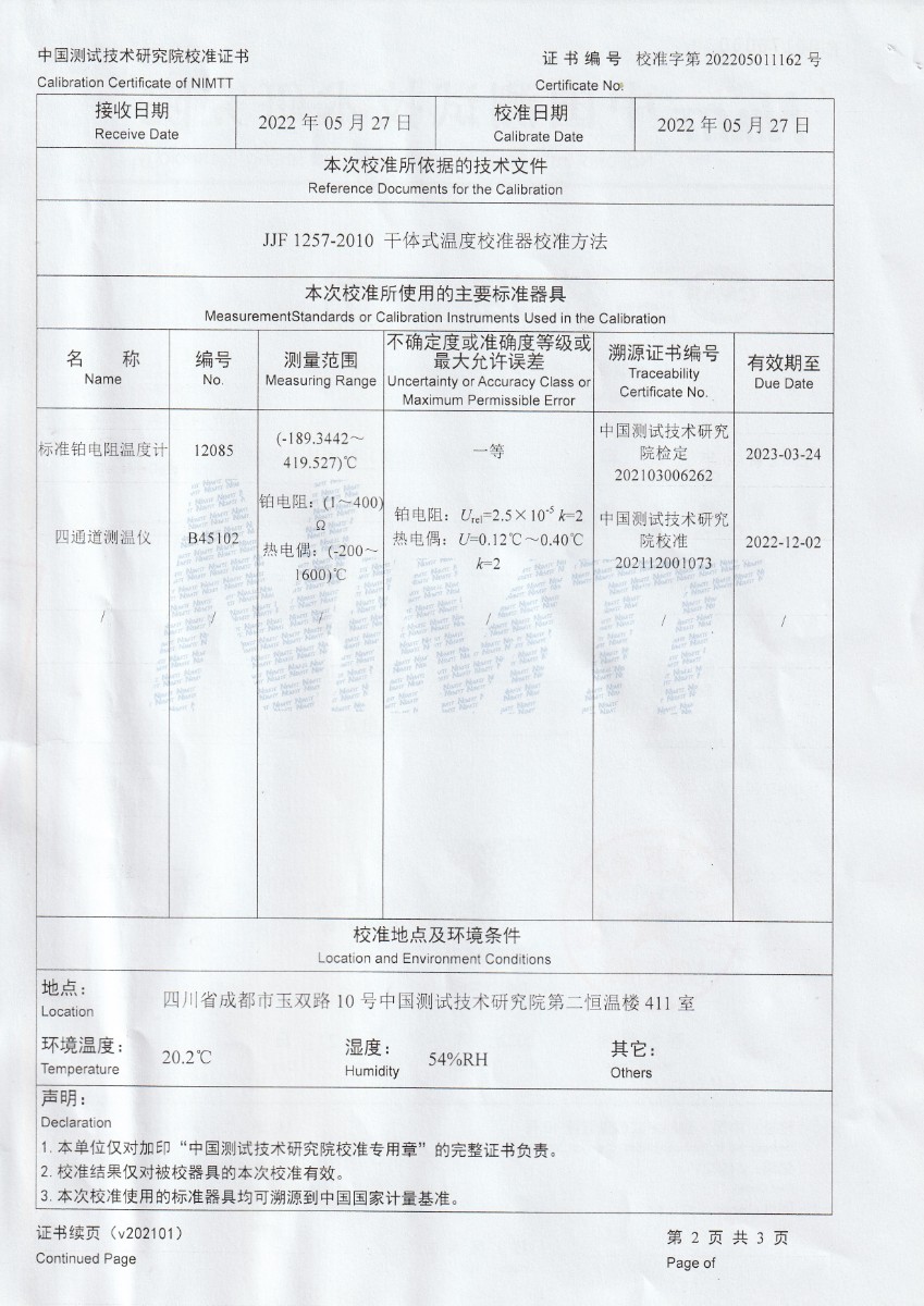 | 上一條:信義光伏產(chǎn)業(yè)(安徽)控股有限公司便攜式溫濕度檢定箱 | 下一條:便攜式干體爐(-30-150℃)校準證書(shū) |
