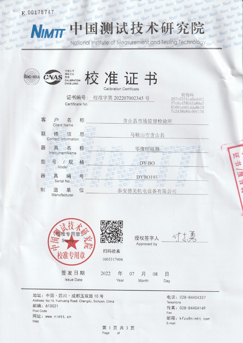| 上一條:中天航測(湖南)檢測技術(shù)有限公司-零點(diǎn)恒溫器 | 下一條:便攜式干體爐(-30-150℃)校準證書(shū) |