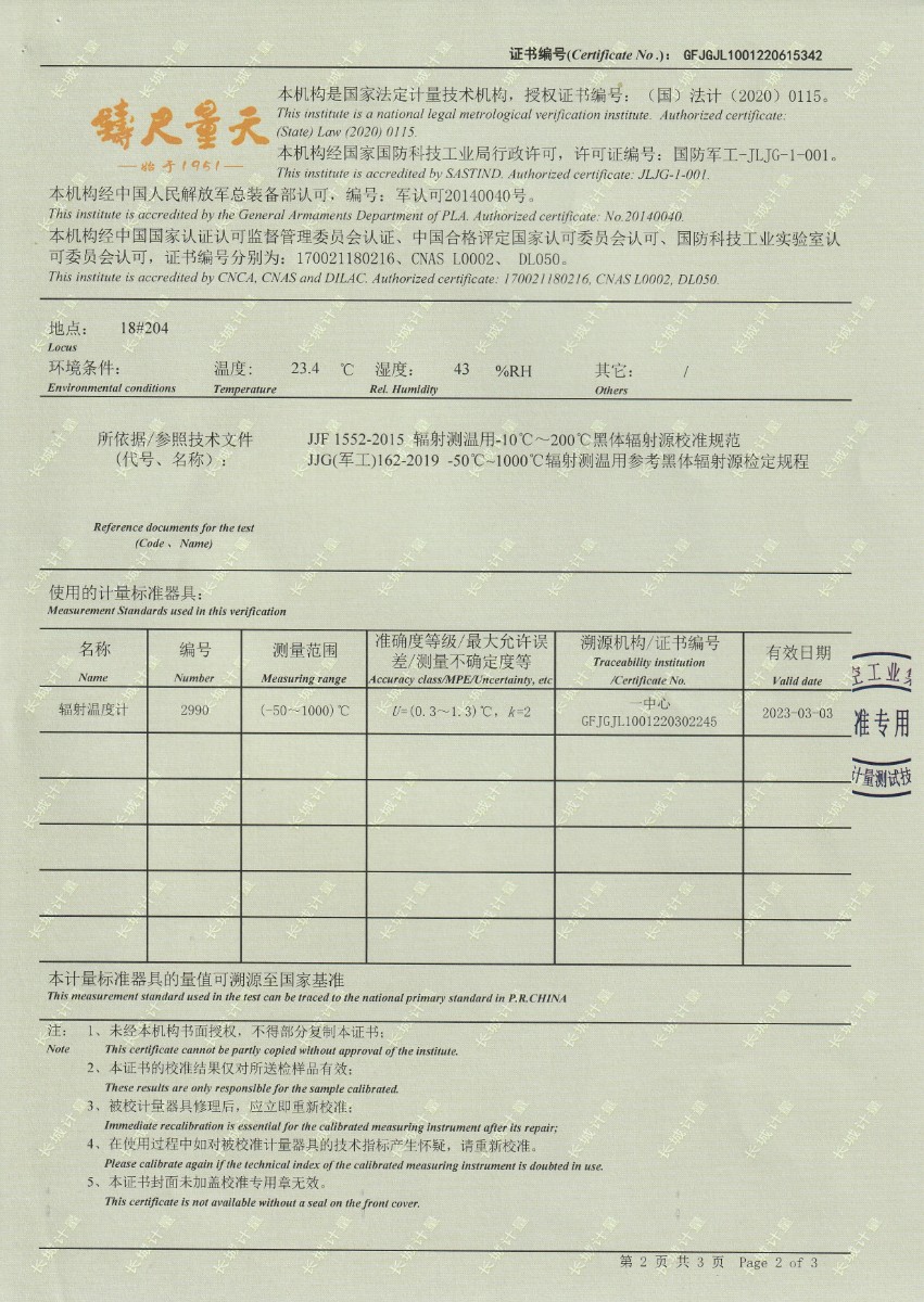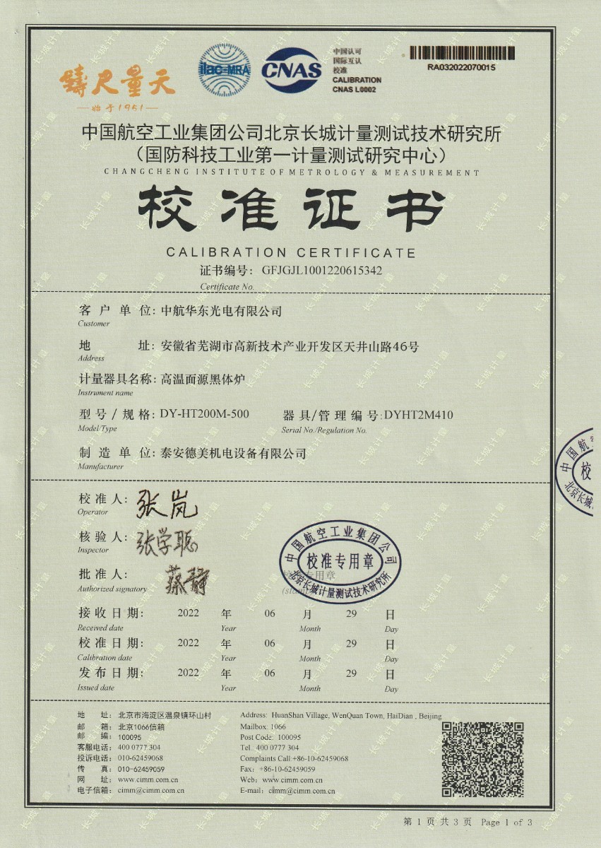 | 上一條:中國航空工業(yè)集團公司沈陽(yáng)空氣動(dòng)力研究所-黑體輻射源 | 下一條:便攜式干體爐(-30-150℃)校準證書(shū) |